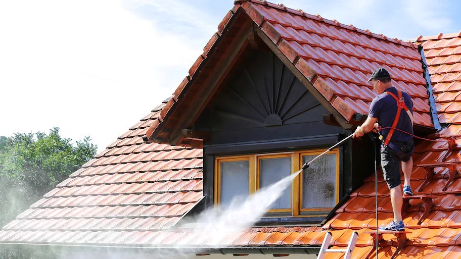 - Soft chemical wash on roofs that are brittle, hard to access or unsafe to walk on